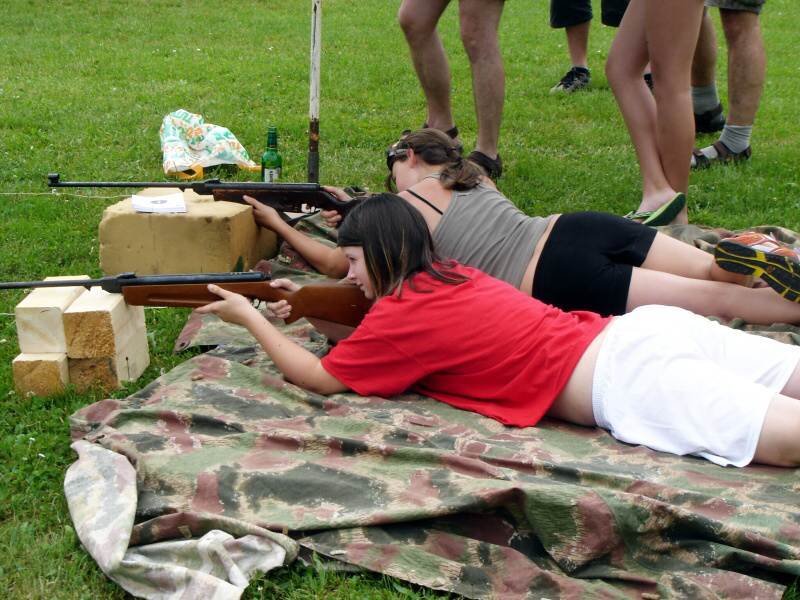 vyzkoušely stříkání proudnicí do terče.