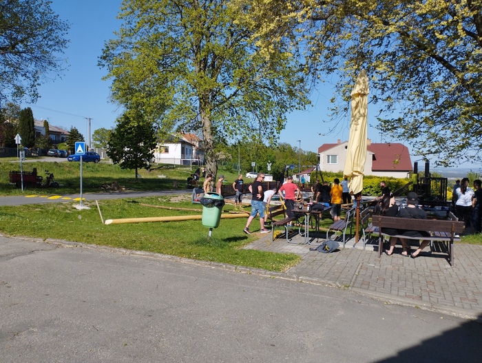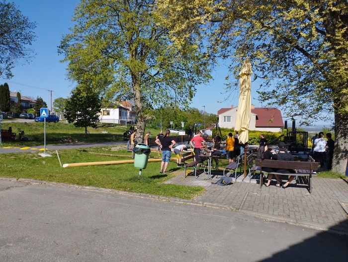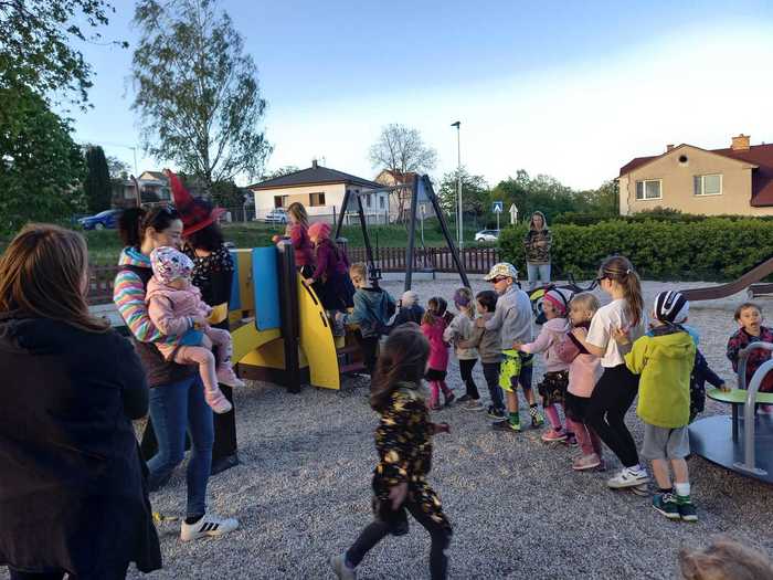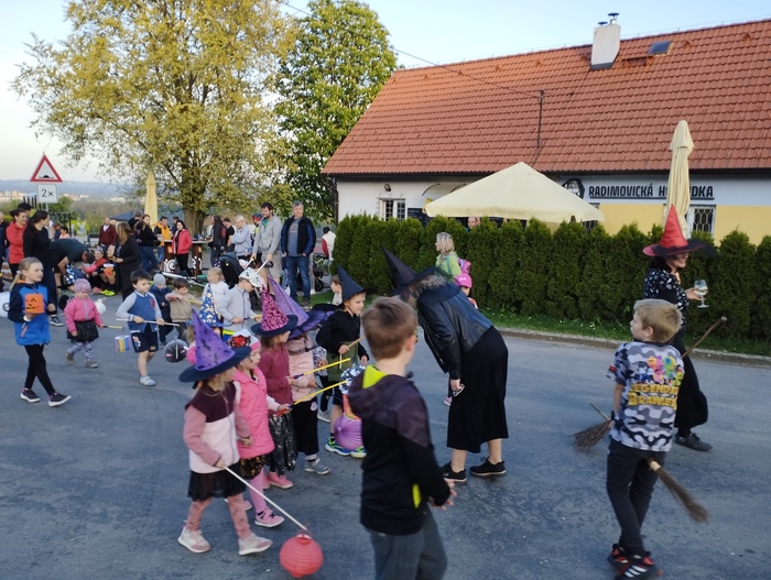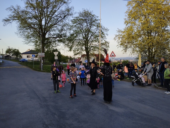 Začali jsme během odpoledne stavěním máje, pak následovala naučná stezka pro všechny děti zakončená opékáním buřtů. Následoval lampiónový průvod který je vždy ukončen zapálením vatry. Letos však bylo zapálení kvůli větru odloženo o týden.