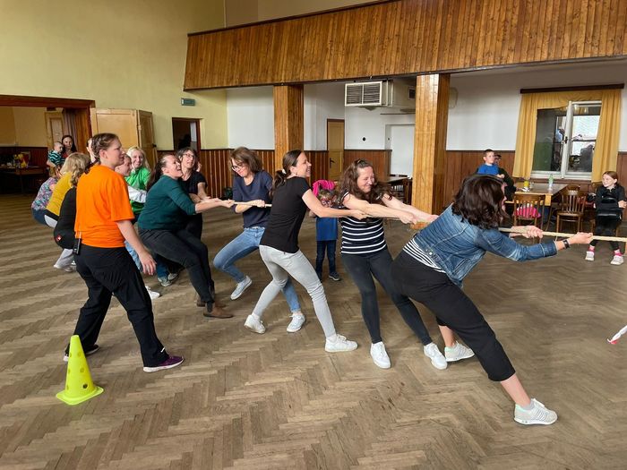 Letos o konání dětského dne rozhodovalo počasí, takže v suchu v místní sokolovně. bylo malování na obličej, různé hry a na konec došlo i na přetah lanem-