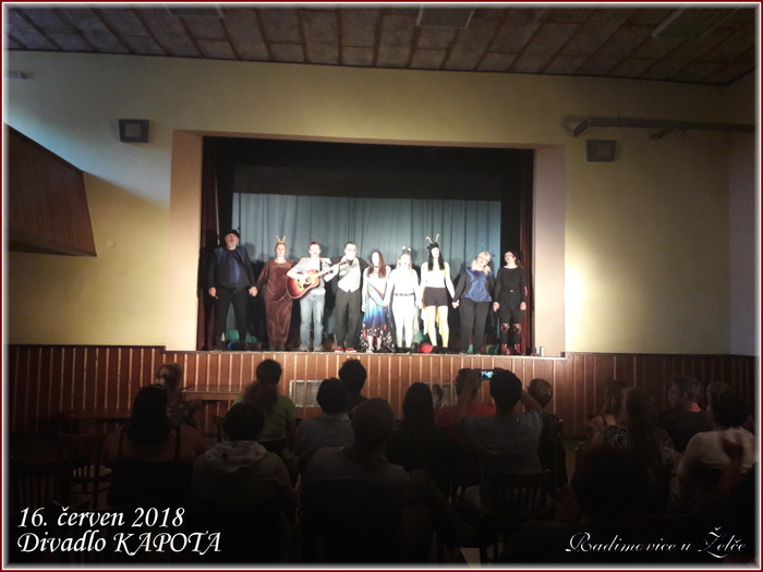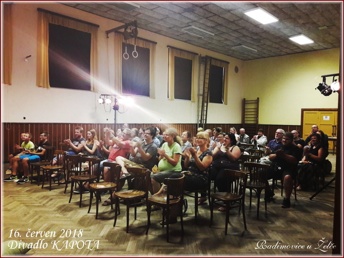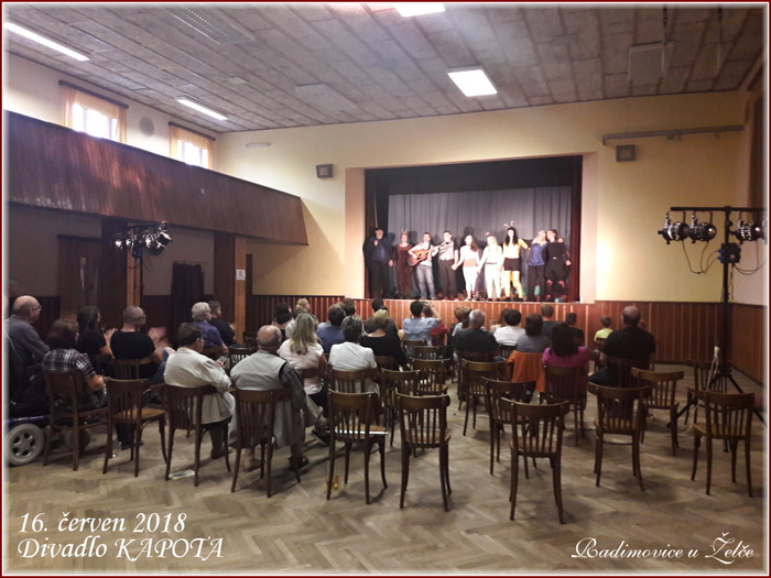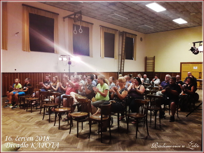 V sobotu 16. června u nás v sokolovně vystoupil divadelní spolek KAPOTA z Tábora se hrou DDT. Představení mělo u diváků velký úspěch.
