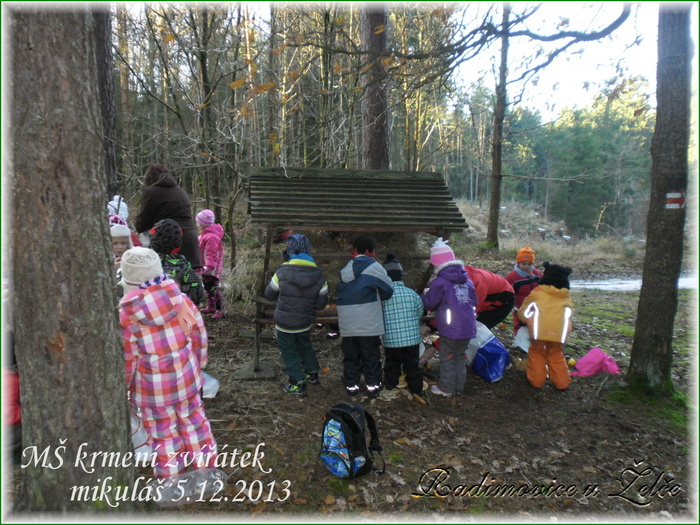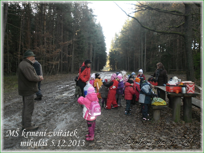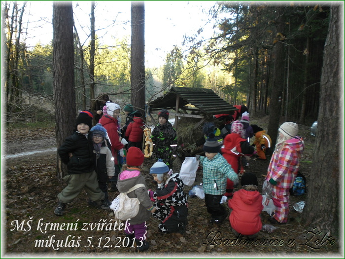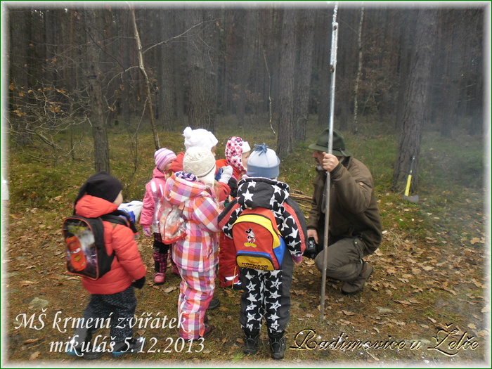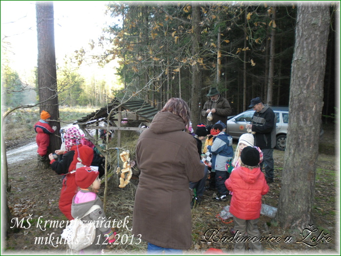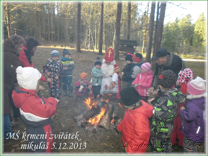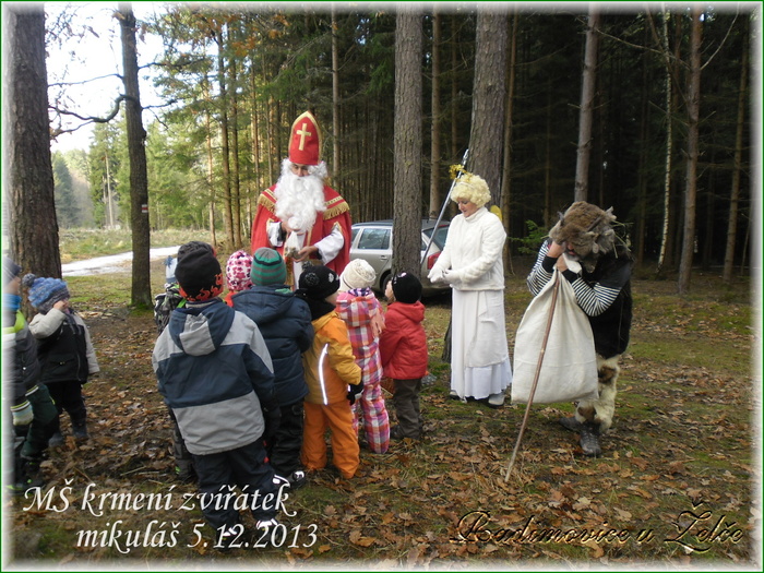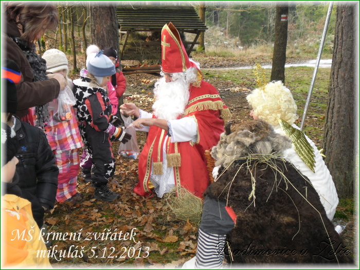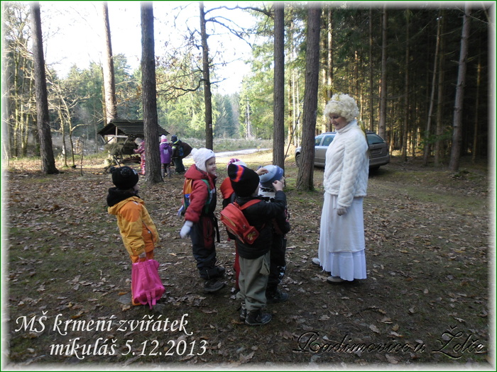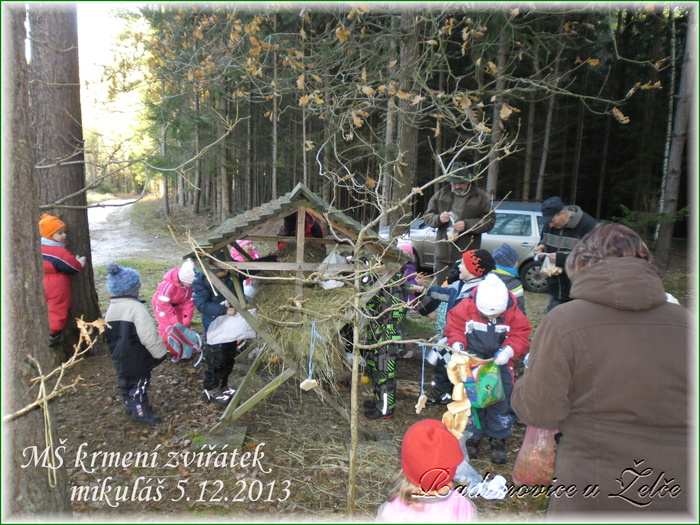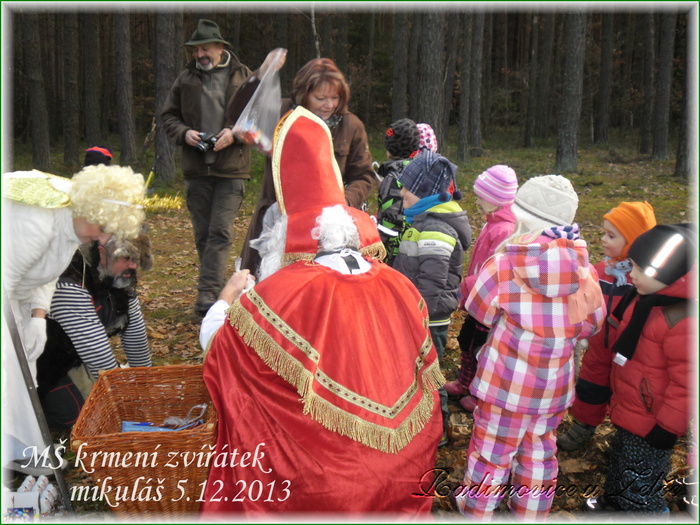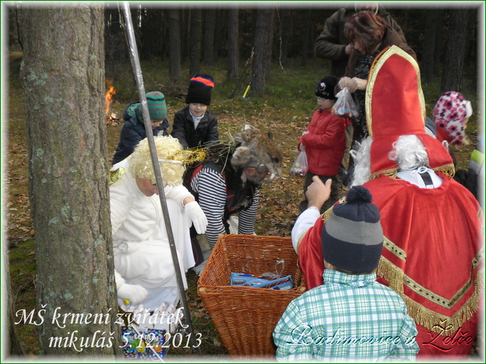 Děti z mateřské školky tradičně krmily v obecnim lese zvířátka, ale letos je tam přišel navštávit mikuláš s čertem a andělem.