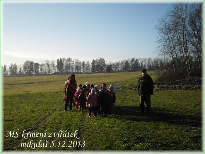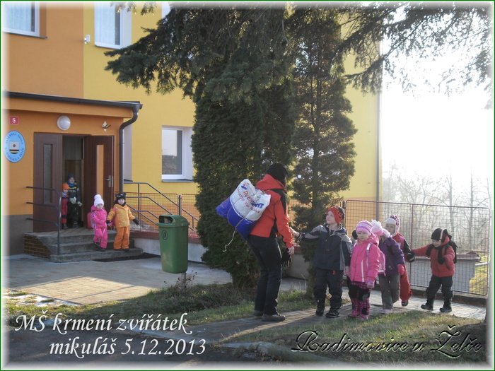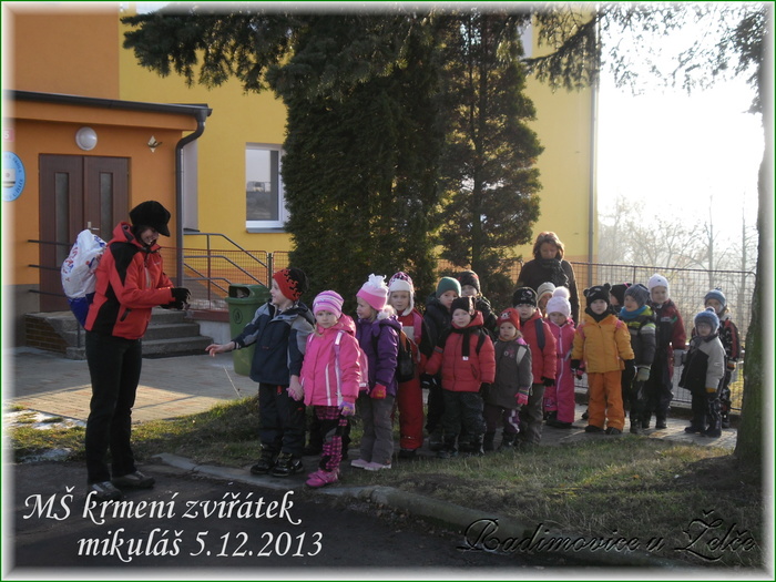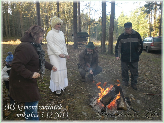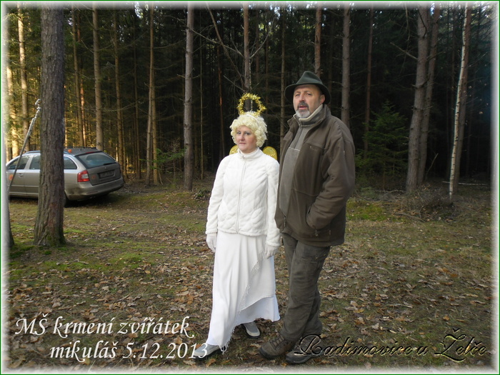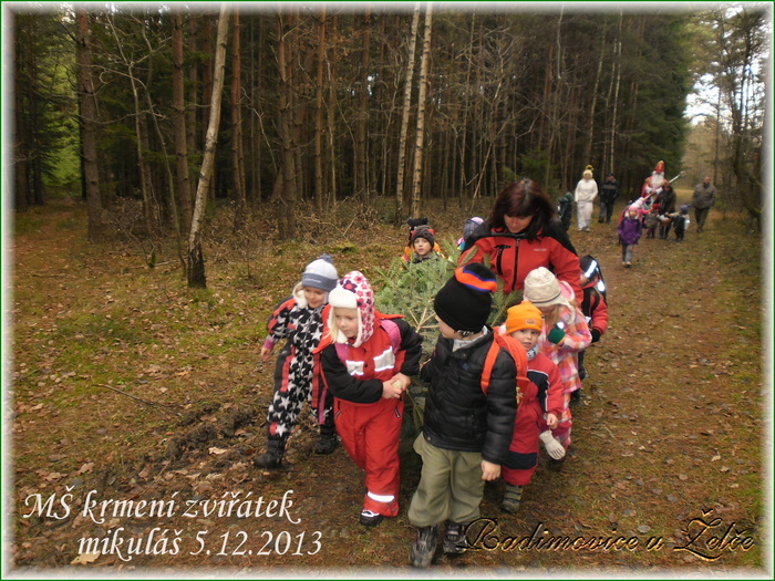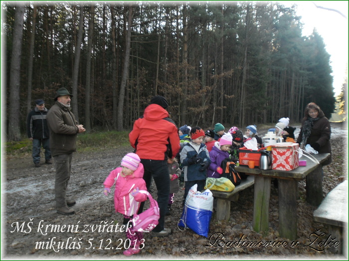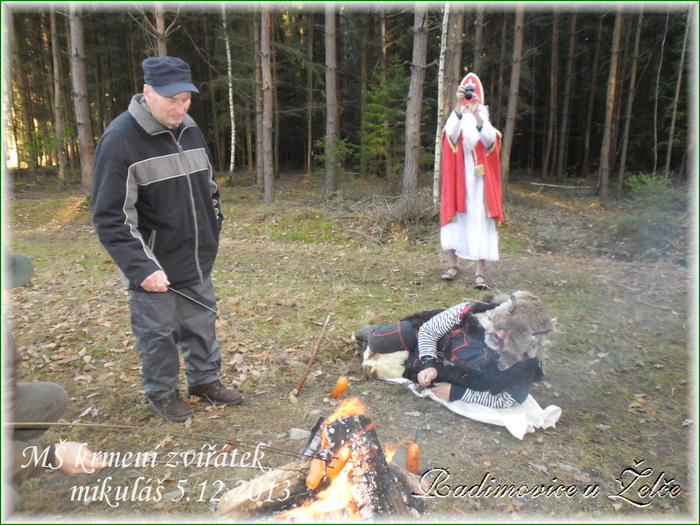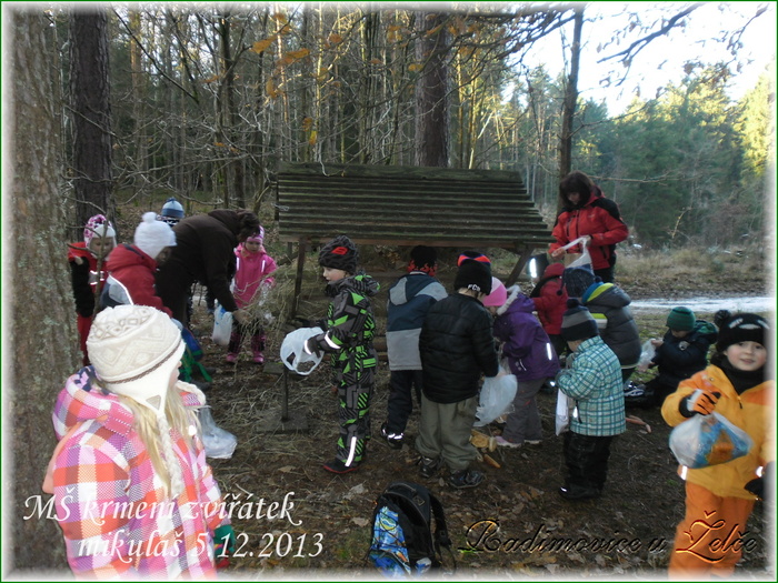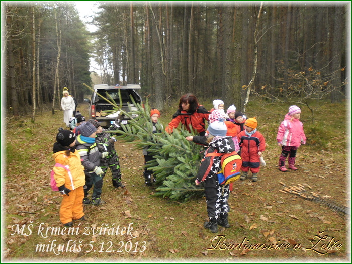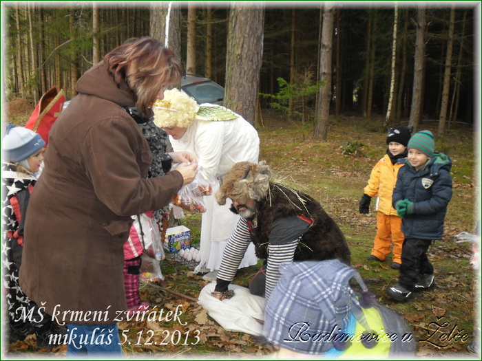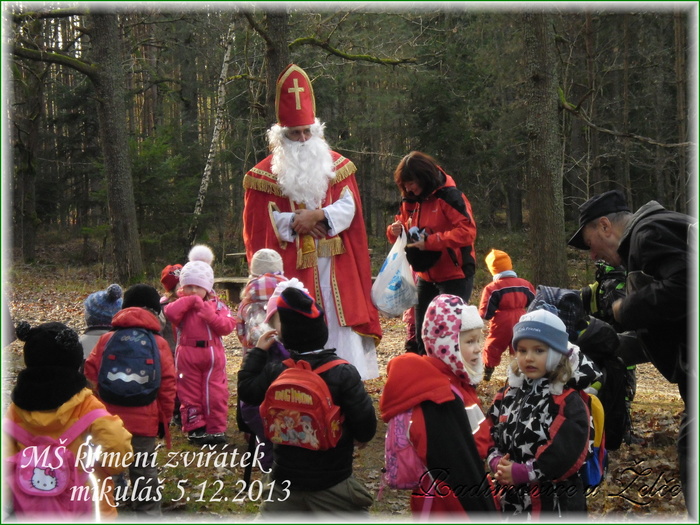 Děti z mateřské školky tradičně krmily v obecnim lese zvířátka, ale letos je tam přišel navštávit mikuláš s čertem a andělem.