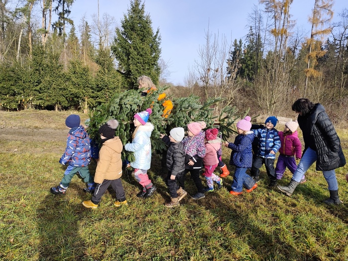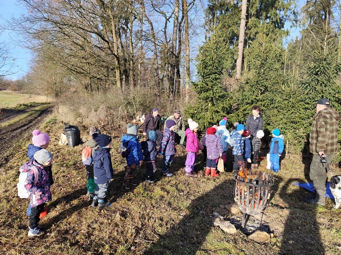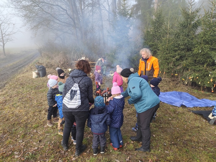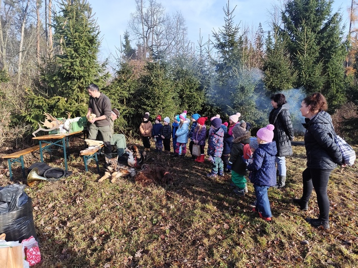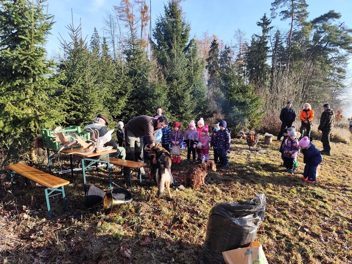 Tento rok děti krmili zvířátka na jiném místě než obvykle, došli jen kousek pod ves, kde měli již připravené místo u lesa.