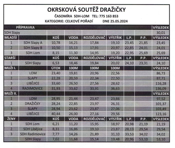 Letos se sešli hasiči našeho okrsku v Dražičkách na pravidelné každoroční soutěží.