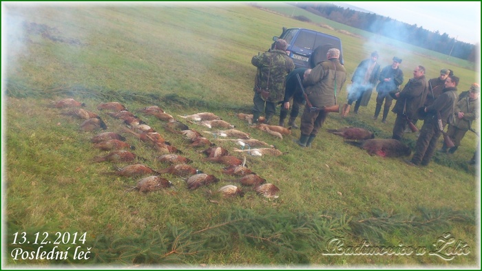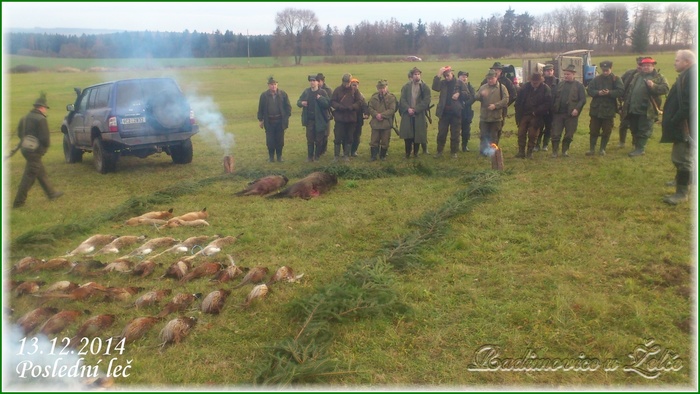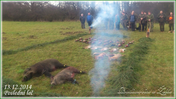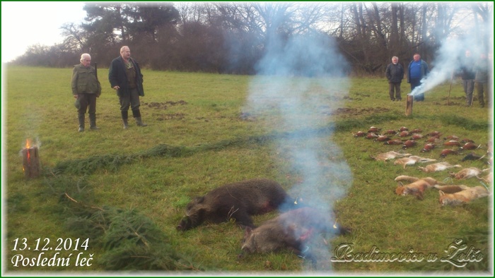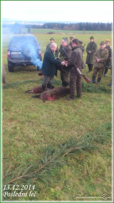 Dne 13.12.2014 se sešli myslivci MS Hýlačka Větrovy a pozvaní hosté na první a poslední hon lovecké sezony 2014. Jak je vidět, tak se povedlo jak počasí, tak i výřad a dokonce i prvně v historii MS se na výřad dostaly dva kusy zvěře černé. Hon byl ve večerních hodinách zakončen poslední lečí s hudbou v objektu zotavovny Vězeňské služby ČR Pracov.