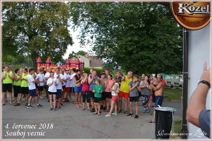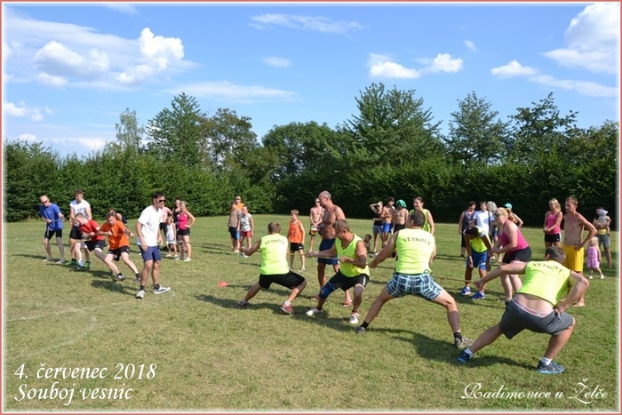 Letošní souboj vesnic se dle našeho názoru velice povedl, vyšlo počasí a k vidění byly atraktivní disciplíny. Největší ohlas měly disciplíny Slepice a Trička a Koupaliště (Paddleboard). U Slepic bylo nafouknuto 30 balónků v ohraničeném sektoru a tým o 10 lidech se svázanými rukami za zády a přilepenými připínáčky na čele musel co nejrychleji všechny balónky popraskat. U soutěže trička se muselo 1 tričko přetáhnout přes 10 lidí. A na koupališti se muselo pomocí paddleboardu projet vytyčená trasa na čas s tím však, že na boardu byl vždy muž a žena a nesměli mít žádnou končetinu ve vodě pouze jedno pádlo.