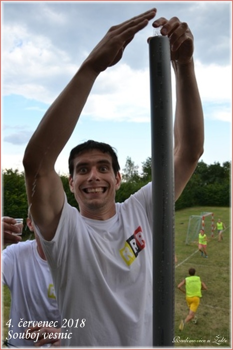 Vše se však rozhodovalo v závěrečném běhu, kde dle výsledků z celkové tabulky startovali vesnice Větrovy, Horky a Radimovice na 24m a Liže(Libějice a Želeč) na 30m. Tým o 8 lidech (3 ženy) musel naplnit vodou trubku pomocí malých panáků, ve které byl umístěn pinpongový míček a dokud nevyplaval musel tým běhat stále dokola. Vítězem se stali Radimovice a to dle diváků o 2 panáky před Horkami :-) .