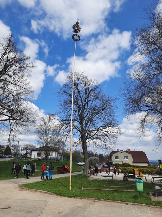 Byla obnovena jedna z tradic STAVĚNÍ MÁJE jak se to aktérům povedlo posuďte sami podle fotek a videa, večer se opekly buřty, lampiónovým průvodem jse došlo ke kapličce, kde se pálily čarodějnice.