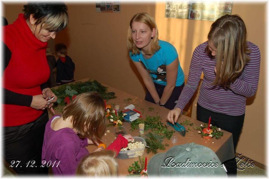 Na první adventní neděli se již tradičně rozsvítil vánoční strom. Odpoledne si děti vyráběly různé ozdoby, svícínky a zdobily perníčky na výtvarné dílně. Před setměním se začali scházet v hojném počtu občané naší obce, pro které byl přípraven vánoční punč a čaj s perníčky. Následovalo vystoupení dětí z mateřské školky s rozsvícením stromu, u kterého si všichni společně za doprovodu harmoniky zazpívali koledy a shlédli závěrečný ohňostroj.